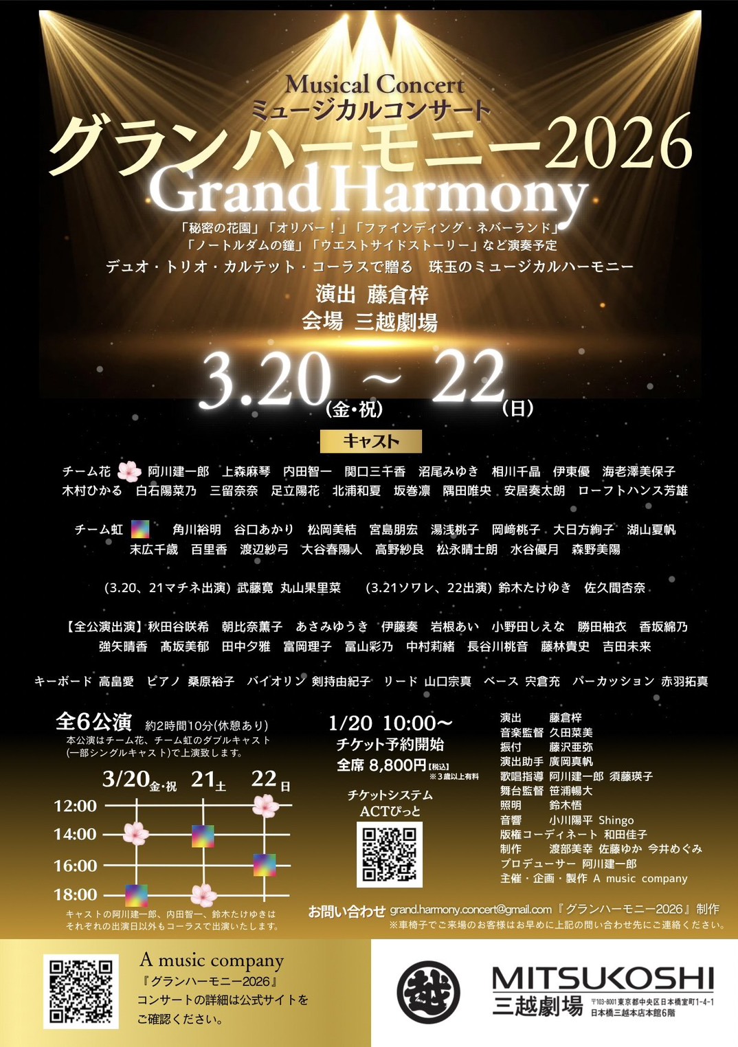 ミュージカルコンサート『グランハーモニー2026』 出演日程:2026年3月20日(金・祝)午後2時~・午後6時~